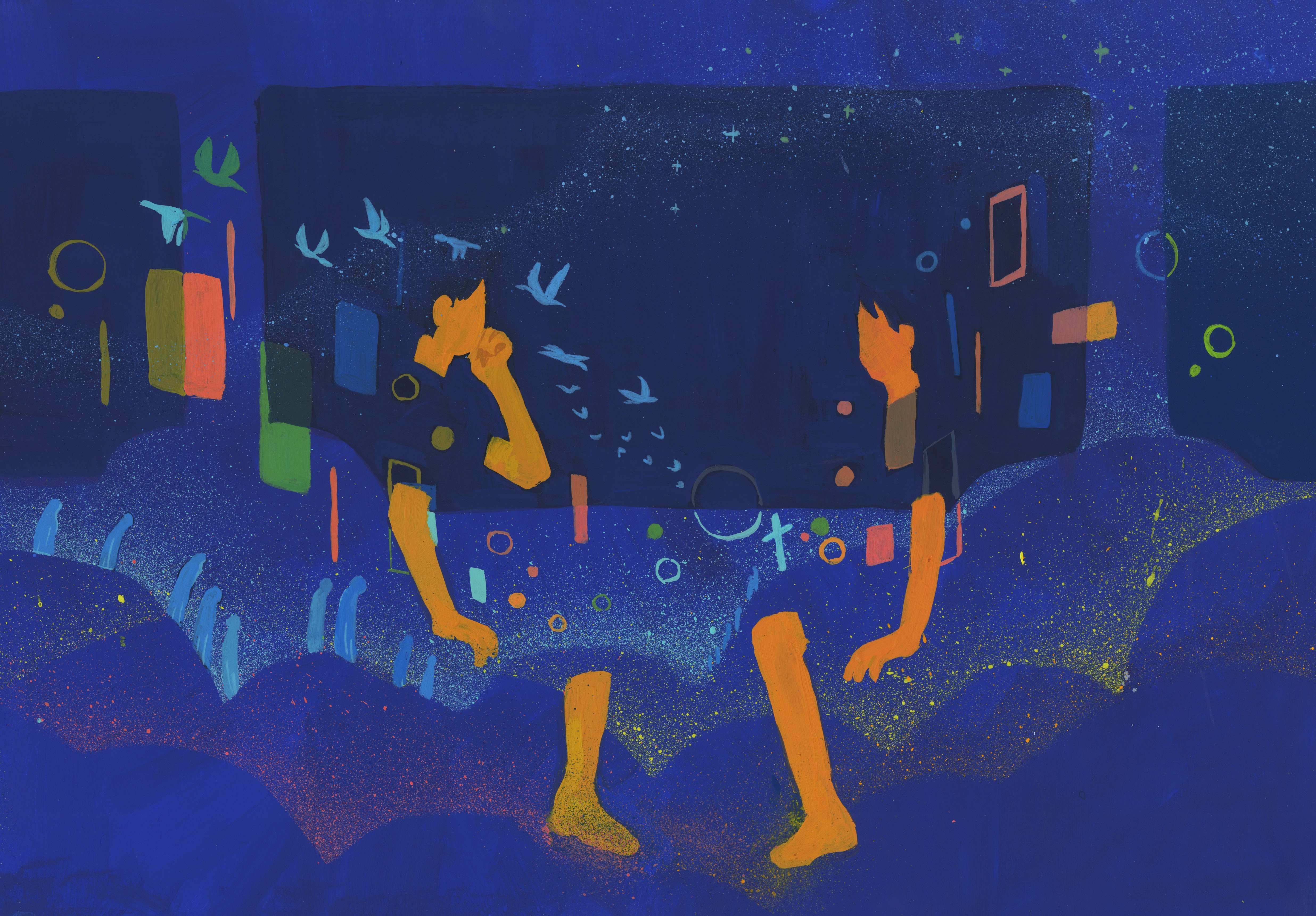 主な使用画材はアクリル絵具、iPadのペイントソフトです。